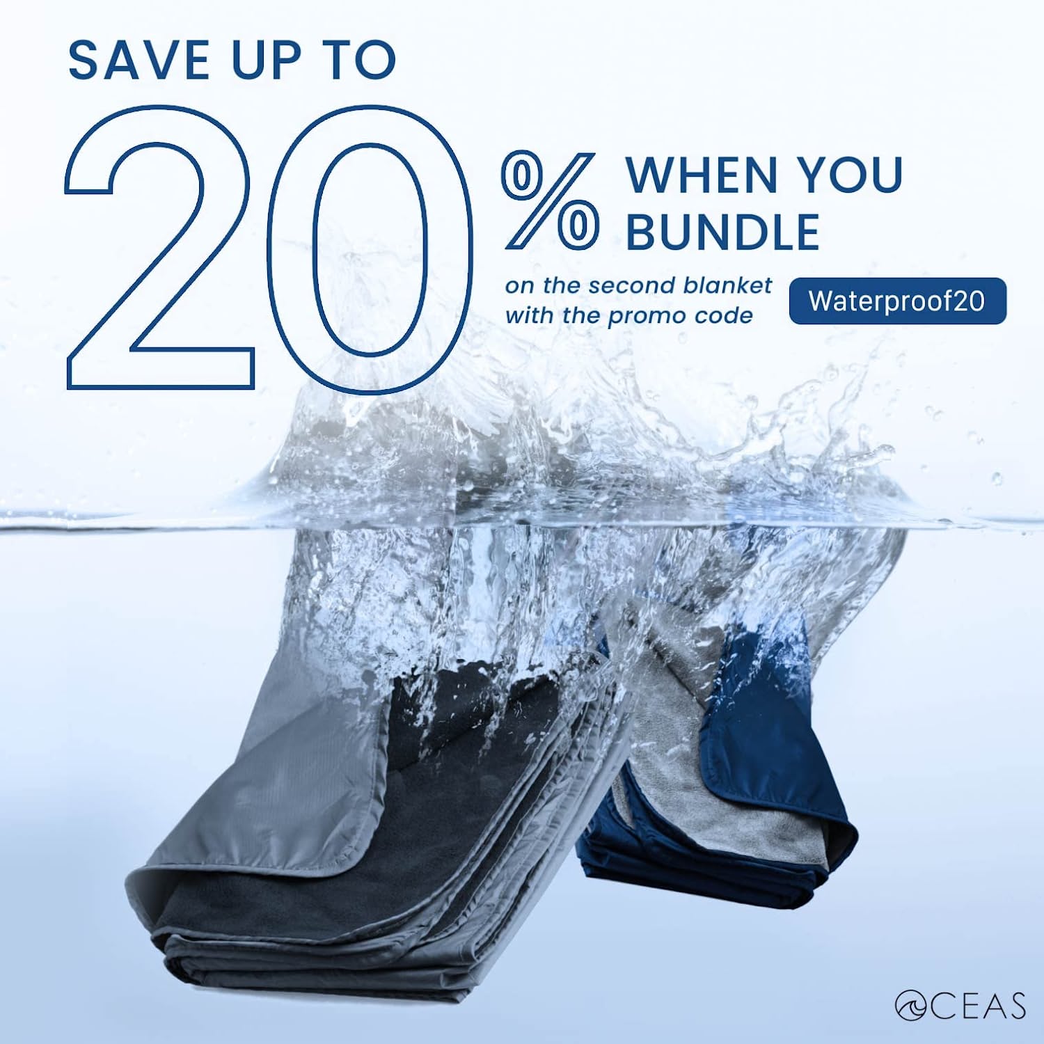 Size And Materials - 79" x 58”: This large outdoor blanket is perfect for up to 3 adults. The plush fleece has insulation that provides the comfort of a warm indoor blanket. The polyester waterproof backing is coated with polyurethane, ensuring strong and sturdy protection against all weather. It’s light, easily packable, and compact. While other outdoor accessories can be a hassle, the Oceas waterproof and windproof camping blanket is the perfect travel buddy for your outdoors adventures.