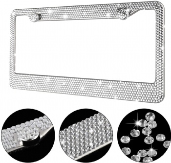 High Quality Stainless Steel Frame -- This bling gem license plate frames use special mixed waterproof glue,to secure the crystal not to falling.Made of high-quality stainless steel,chrome mirror polished,no worry about fading and rust,it can be easy to cooperate with any paint job.
