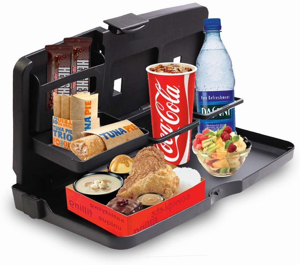 1. MEAL TRAY- With the tray in your car you can easily do that. Just open it up and set up your delicious meal.